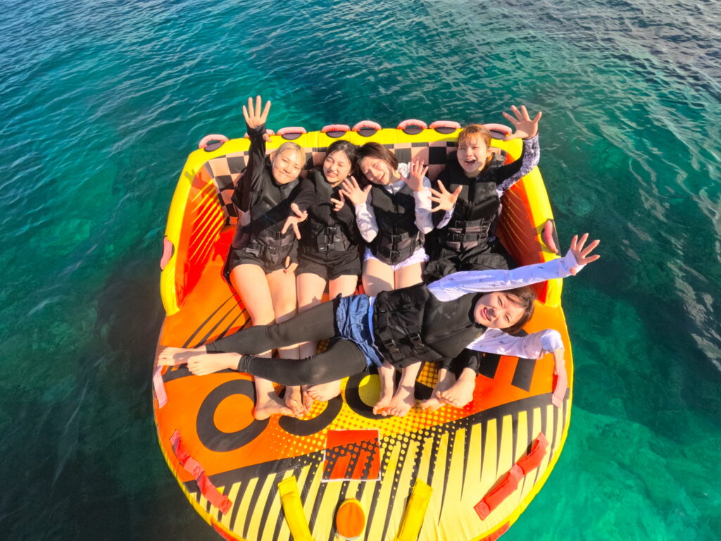団体様・カップル・ご家族に大人気のバナナボート体験です。